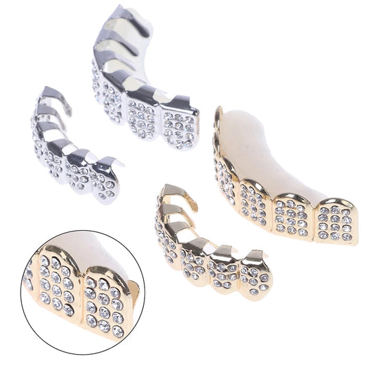 1pcs/1set Fshion Gold/silver Teeth Top Bottom Men Women Diamond Jewelry Stylish And Luxury Gift