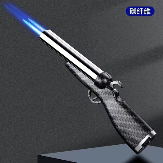 Creative Mini Gun Double Flame Lighter Windproof Double Jet Butane Gas Open Flame Lighter Smoking Accessories Men's Gift