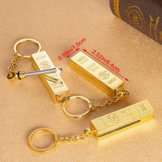 Gold Bar Ten Thousand Matches Creative Portable Pendant Refillable Metal Kerosene Lighter Multi-Functional Keychain