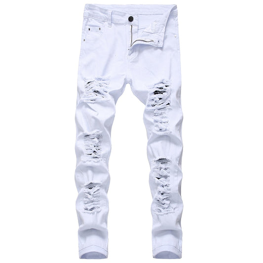 Destruction Trousers Distressed Jeans Men Denim Designer Brand White Pants