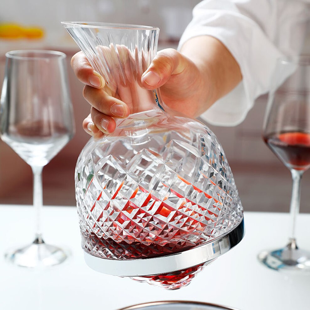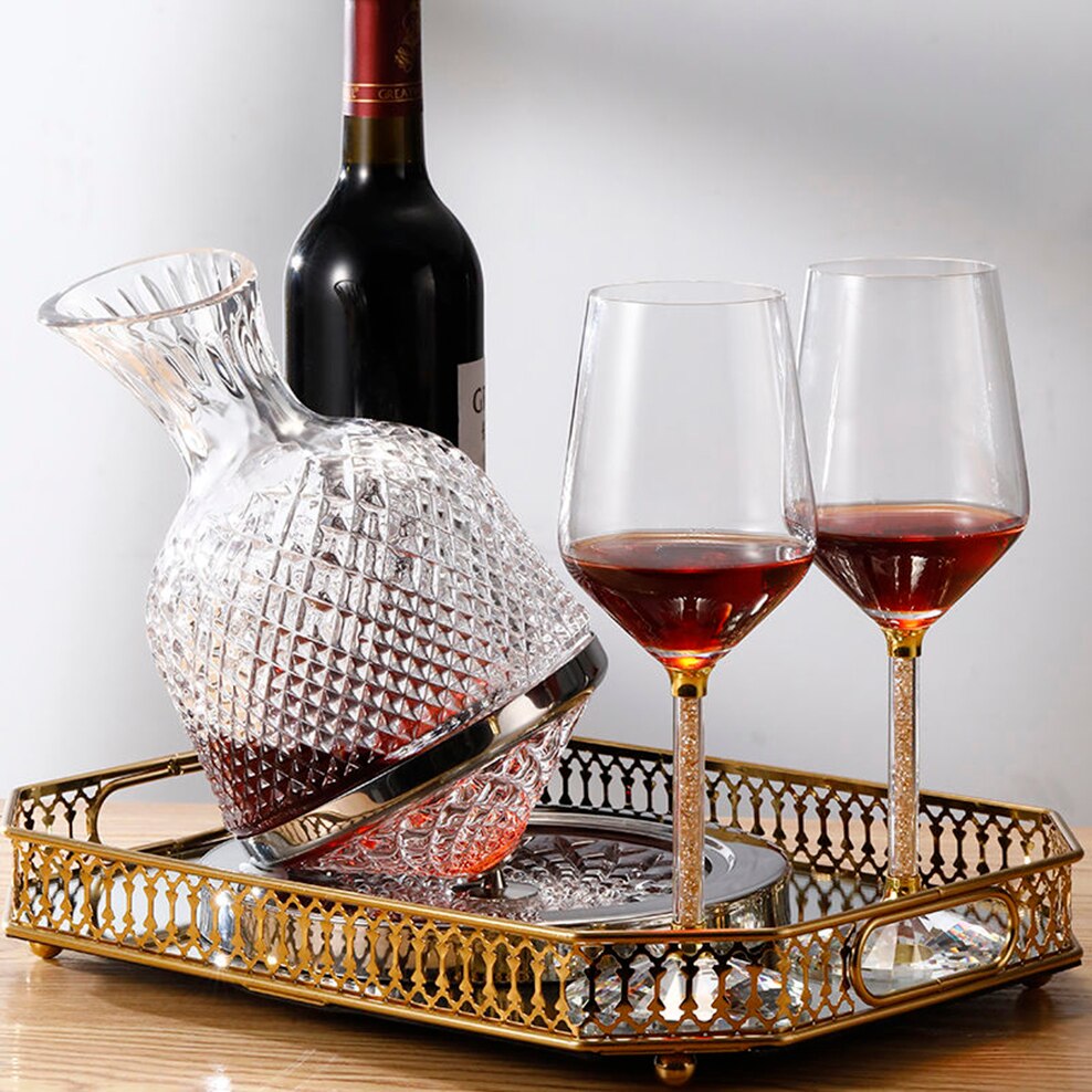1500ML European Style Rotating Decanter Gyro Wine Dispenser Vintage Crystal Glass Hip Flask Gift Box Decanter Palace Wine Set