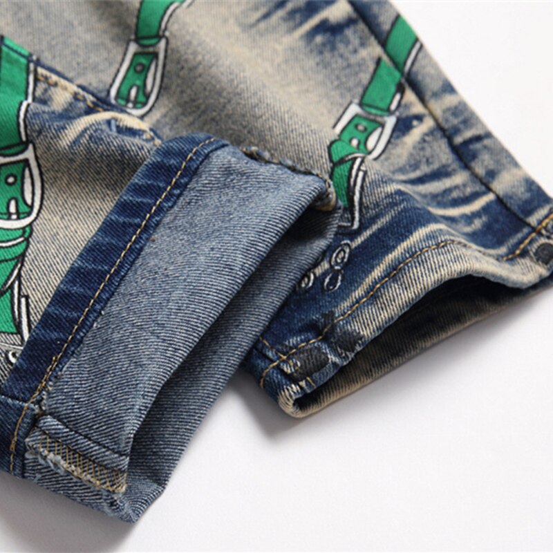 New Fashion Printed Jeans Stretch Slim Retro Pencil Pants High Street Casual Mid-Waist Motorcycle Trend Trousers