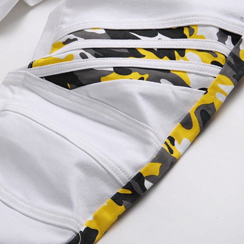 Autumn Winter White Camouflage Patchwork Jeans Mid-Waist Slim Stretch Hip Hop Pants Street Casual Wear
