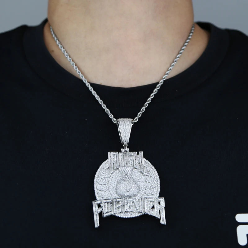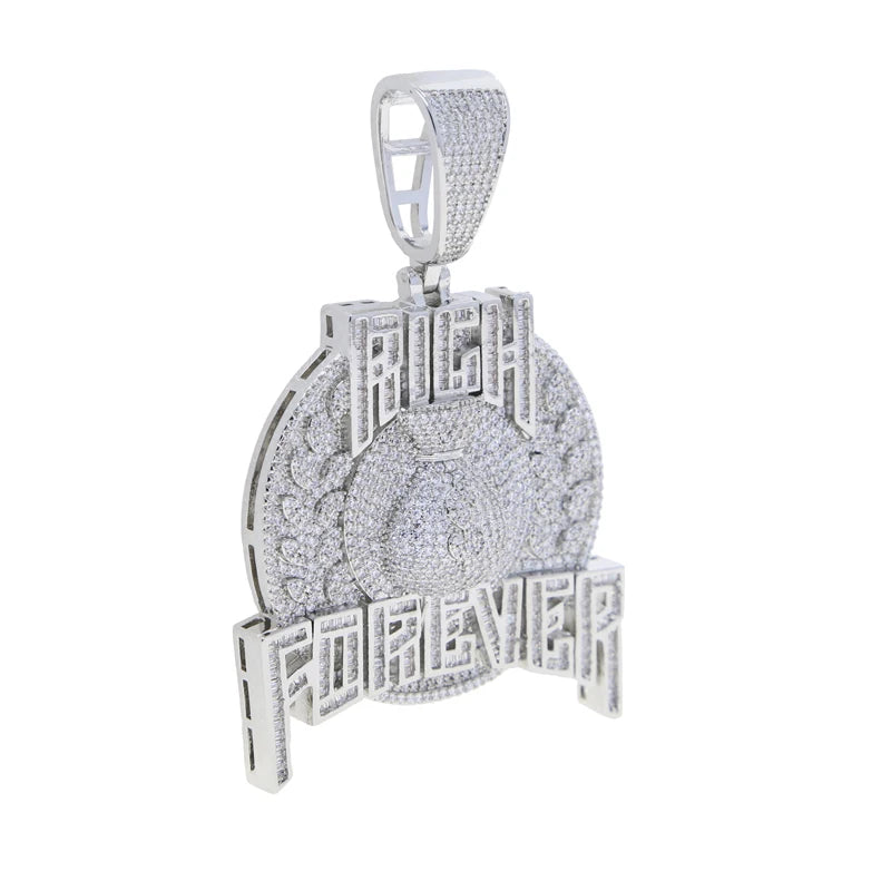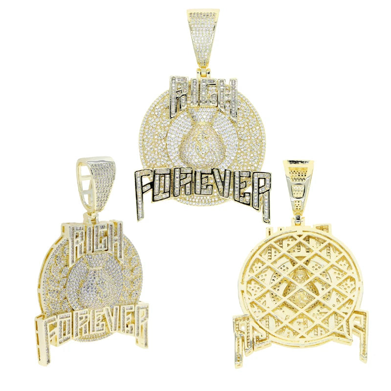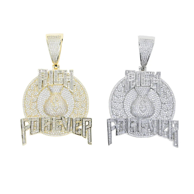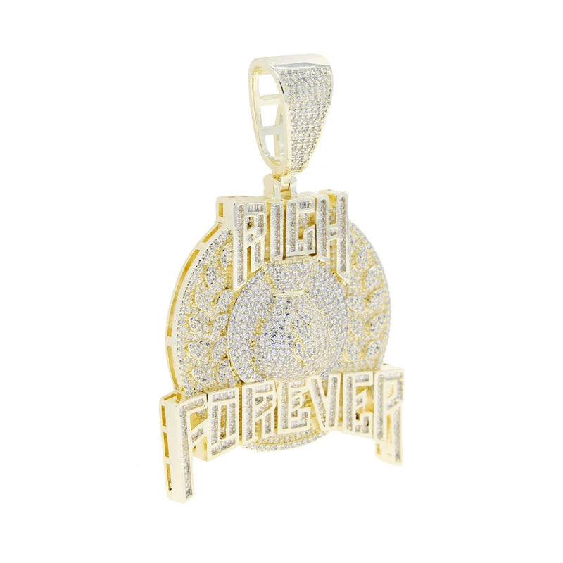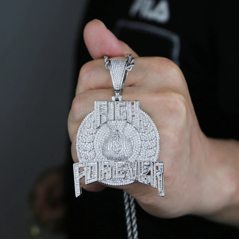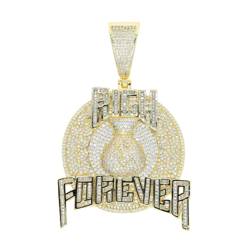 Bling Cz Letter Iced Out Prong Setting Rich Forever Pendant Necklace for Men Gold Color Hip Hop Jewelry