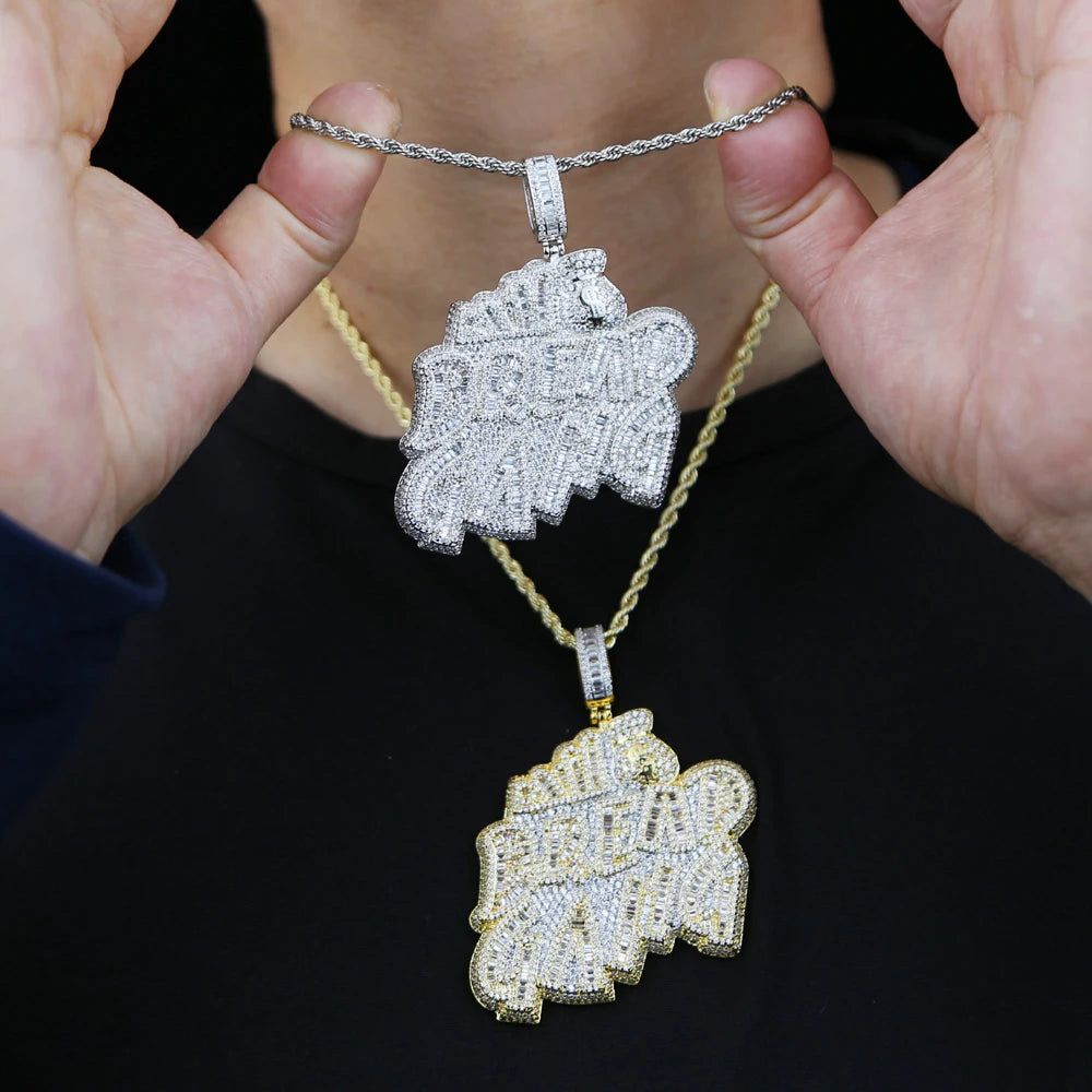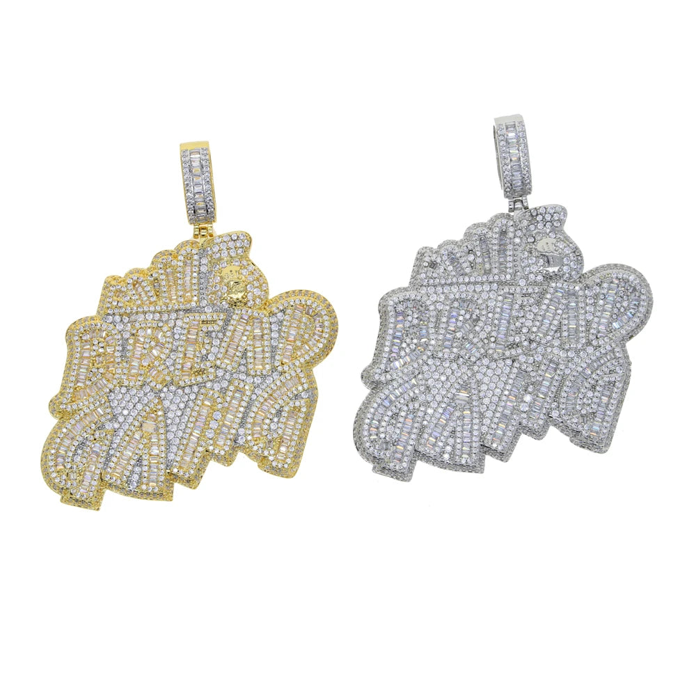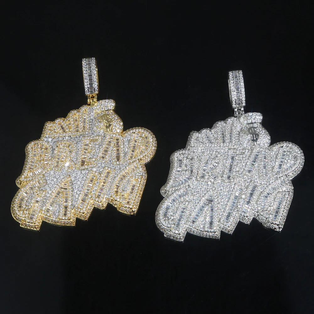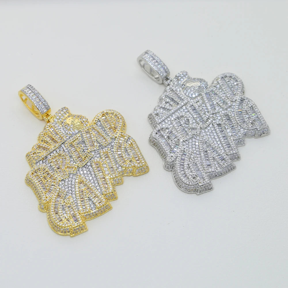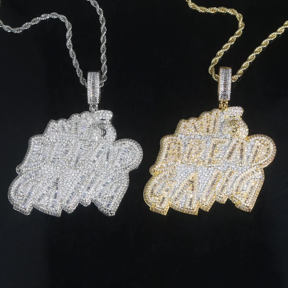 Letters Necklace For Men Bling Micro Pave 5A CZ Cubic Zirconia Money Bag Pendant Iced Out