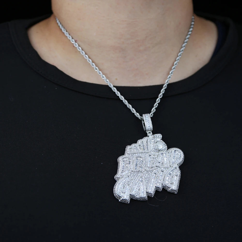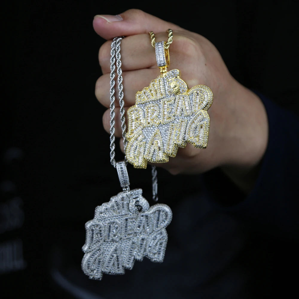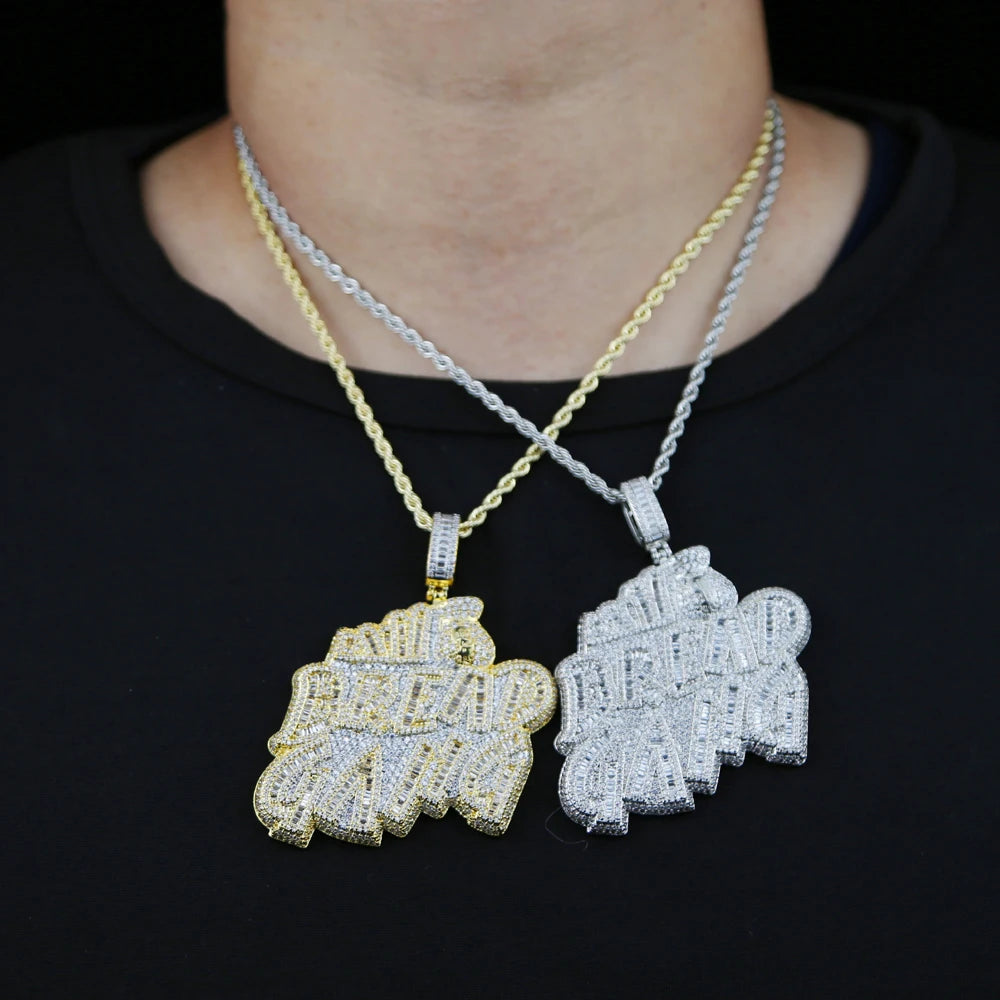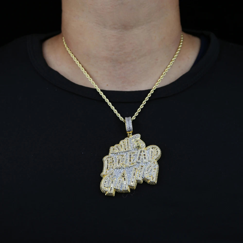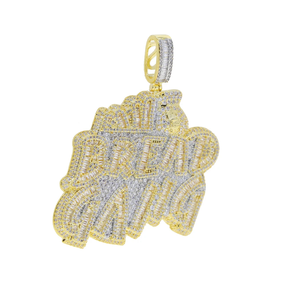 Letters Necklace For Men Bling Micro Pave 5A CZ Cubic Zirconia Money Bag Pendant Iced Out