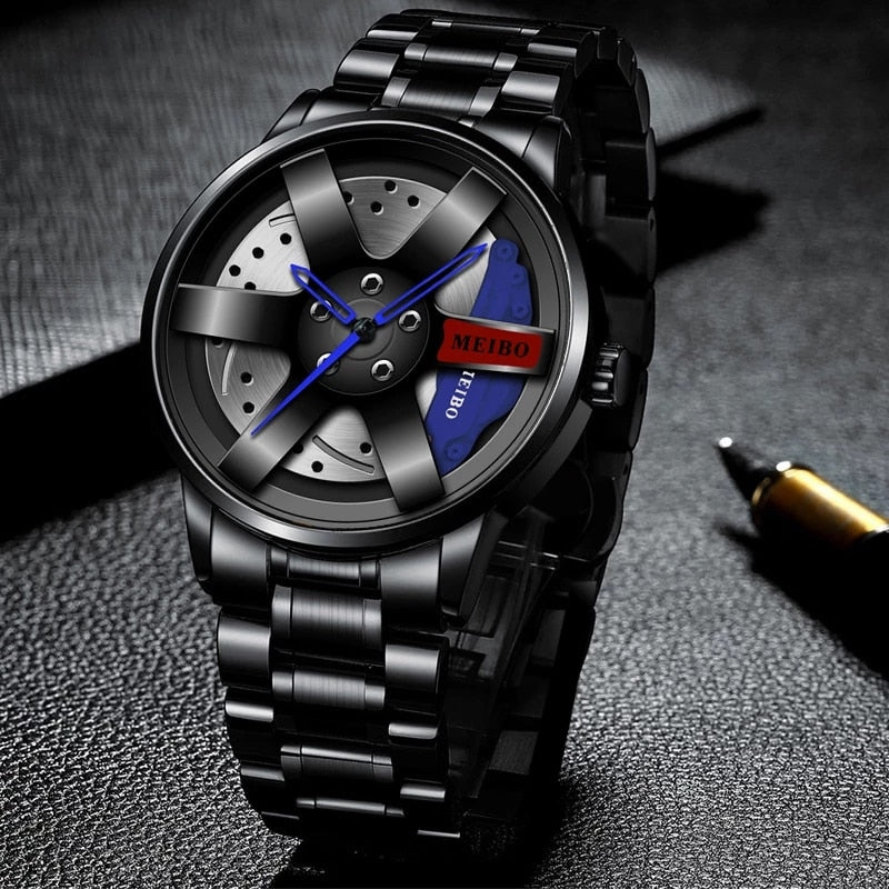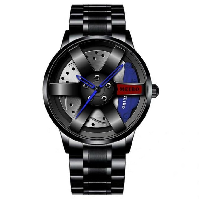 Fashion Mens Car Wheel Watches Luxury Stainless Steel Waterproof Watch for Men Quartz Wrist Watches Male Clock