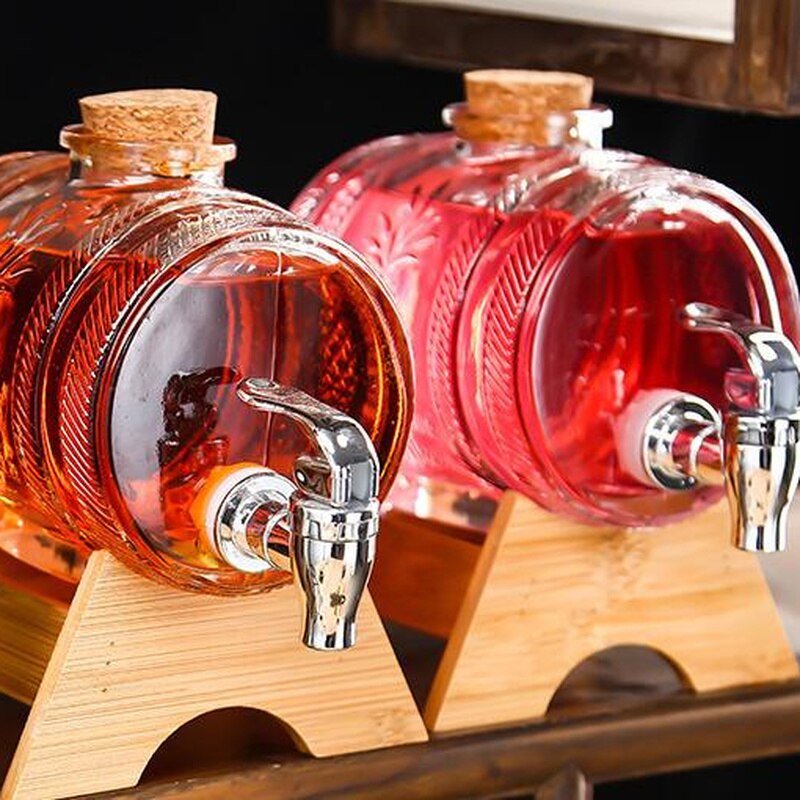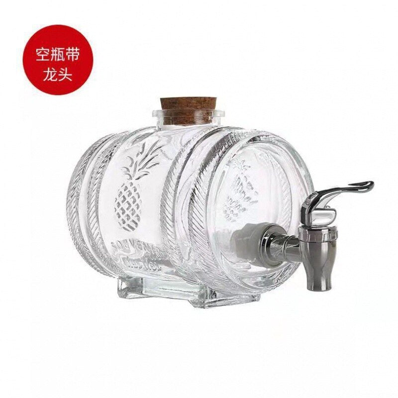 Glass Wine Barrel With Tap Bottle Whiskey Wine Decanter with Stopper Seal Champagne Vodka Glasses Set Bar Transparent Cocktail