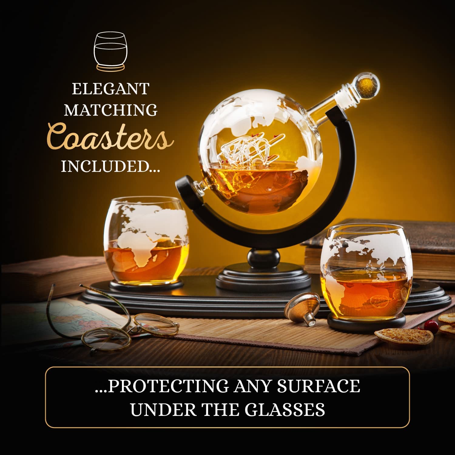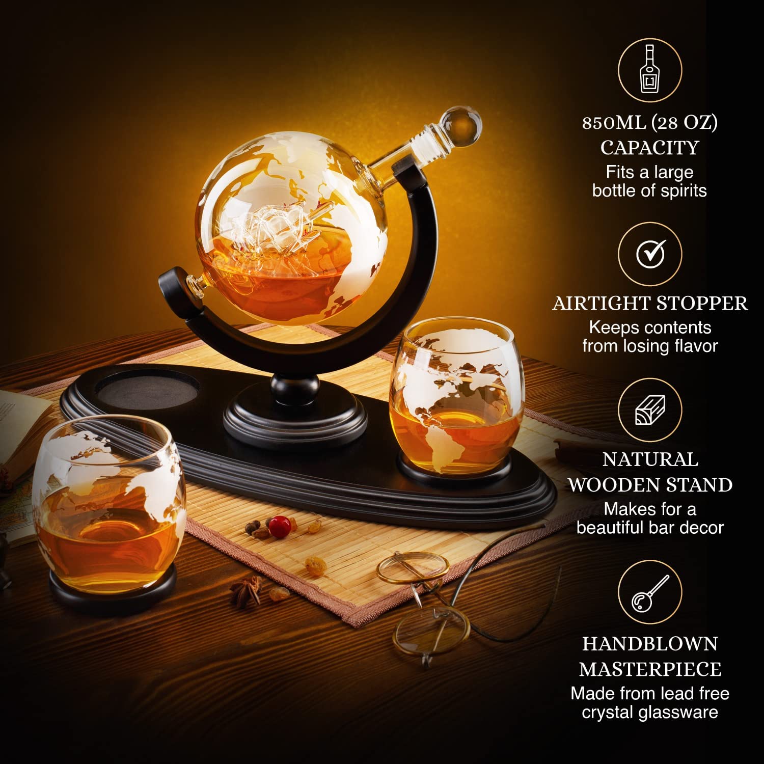 Globe Whiskey Decanter Gift Set Handmade Home Bar Decor Airtight Liquor Dispense Gift for Men Dad Boyfriend Husband 850 ML