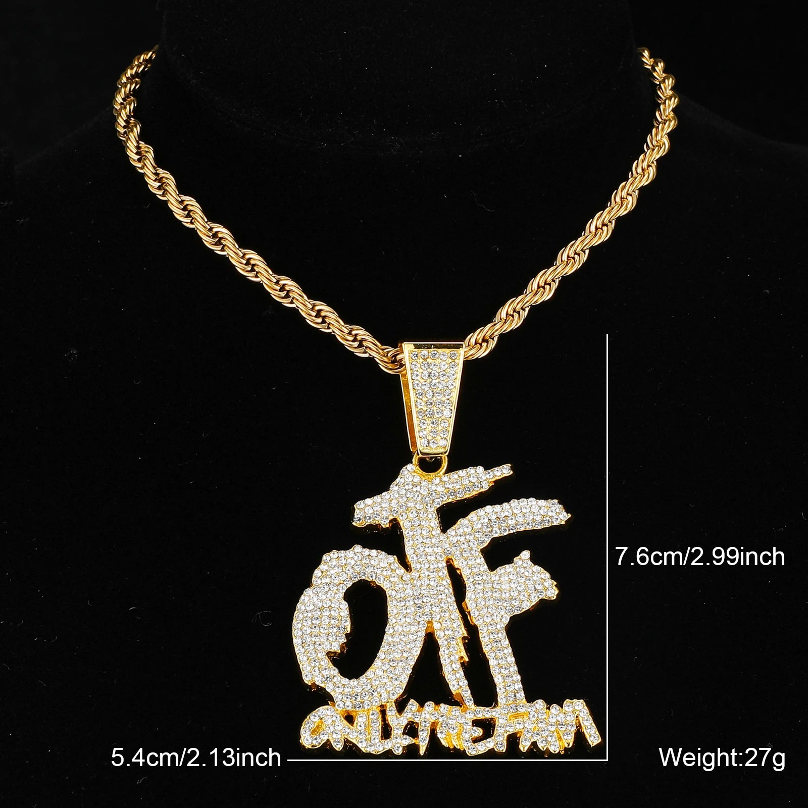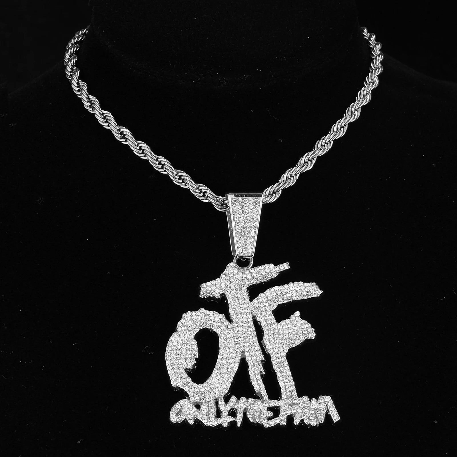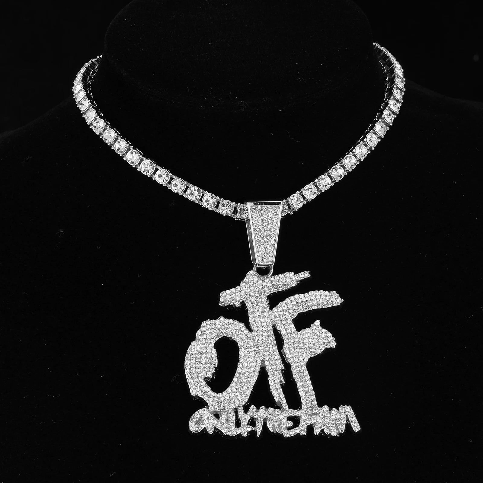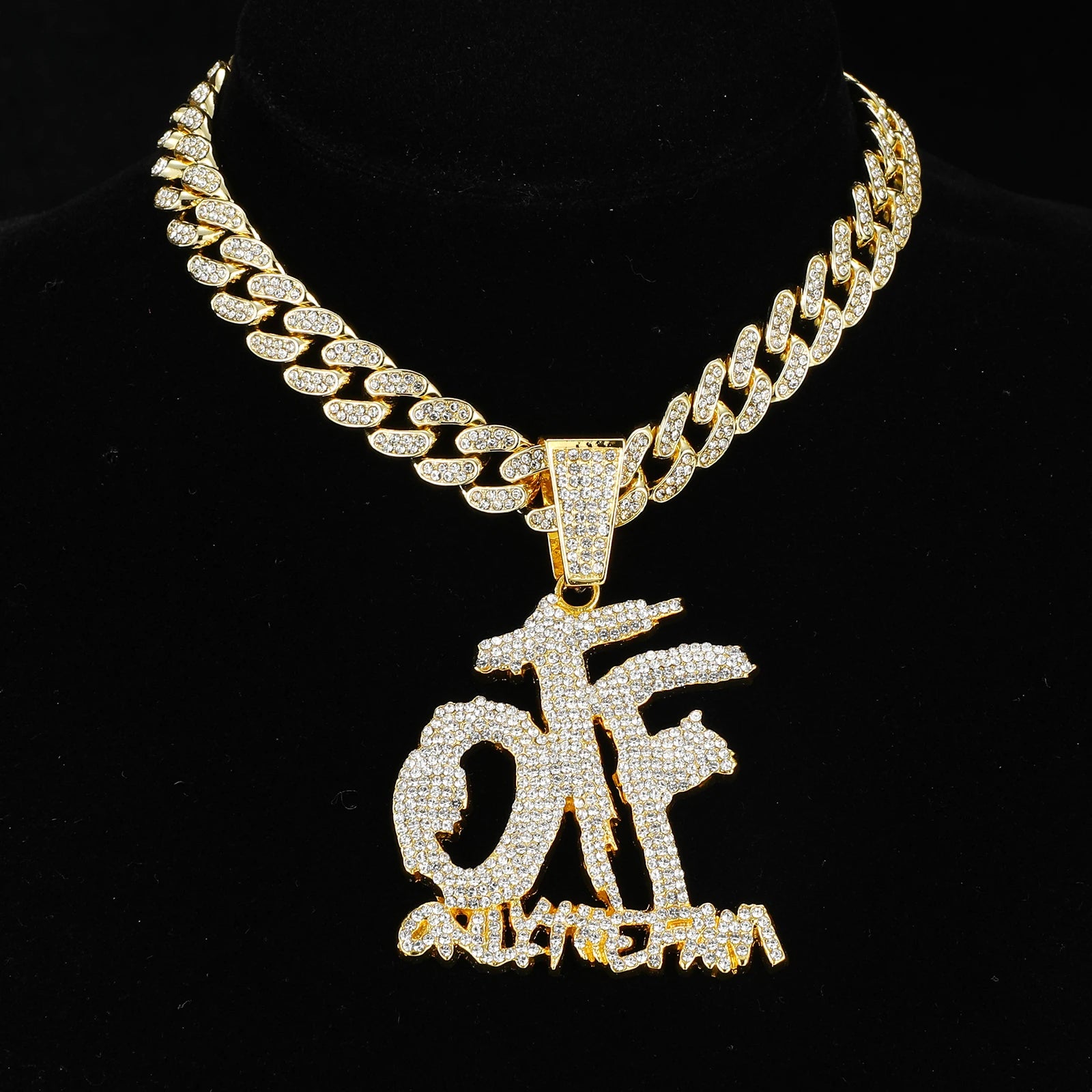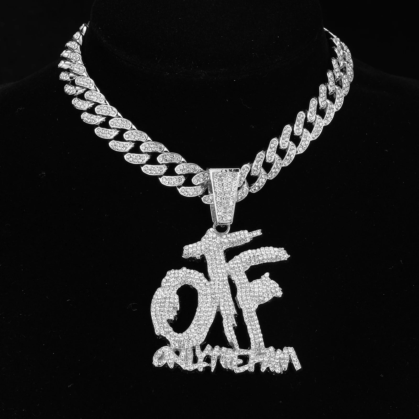 Iced Out OTF Letter Pendant Cuban Necklace Shiny Rhinestone Zircon Necklace