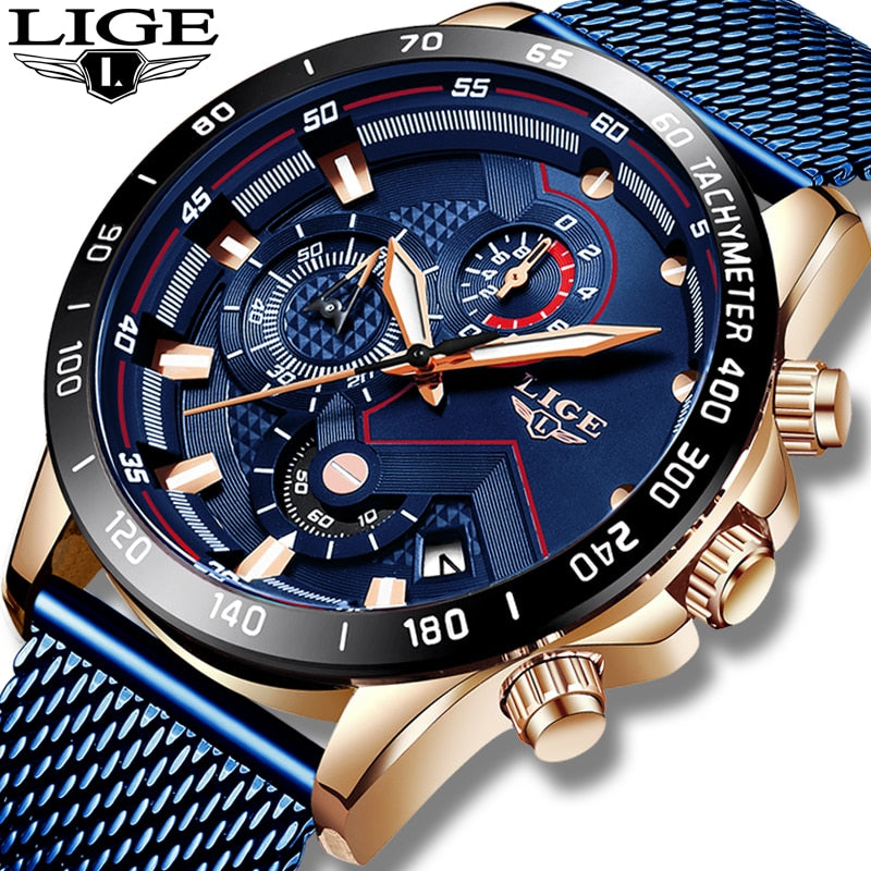 Men Fashion Blue Watch For Men Luxury Quartz Mens Watches Waterproof Sport Chronograph