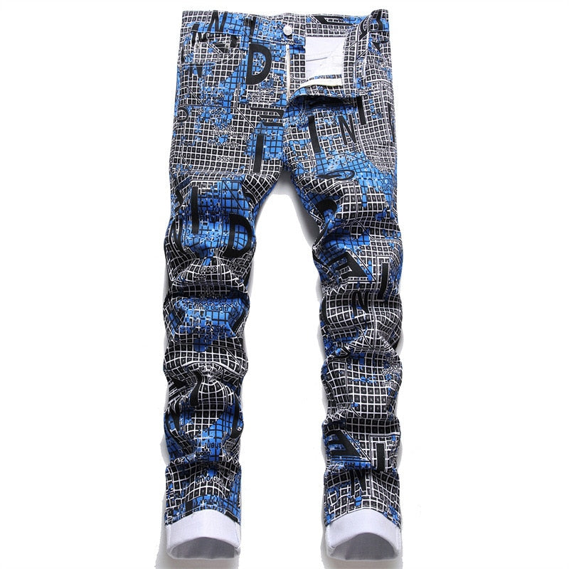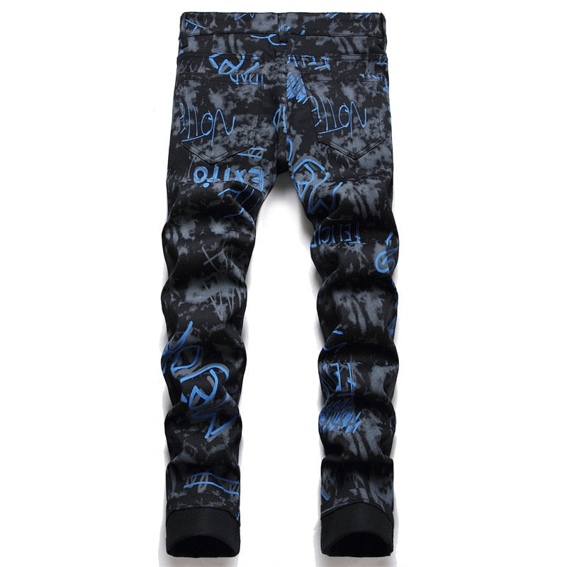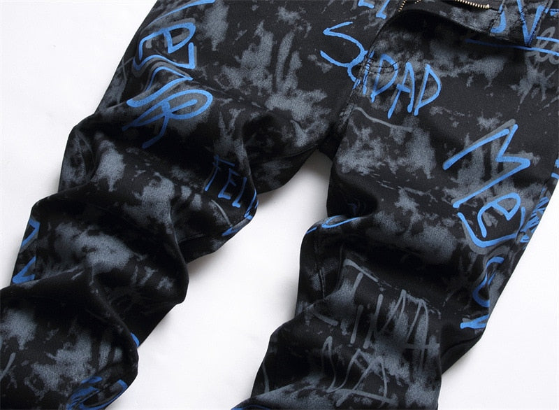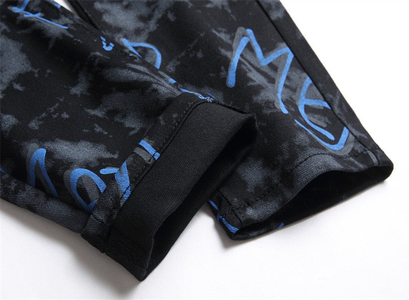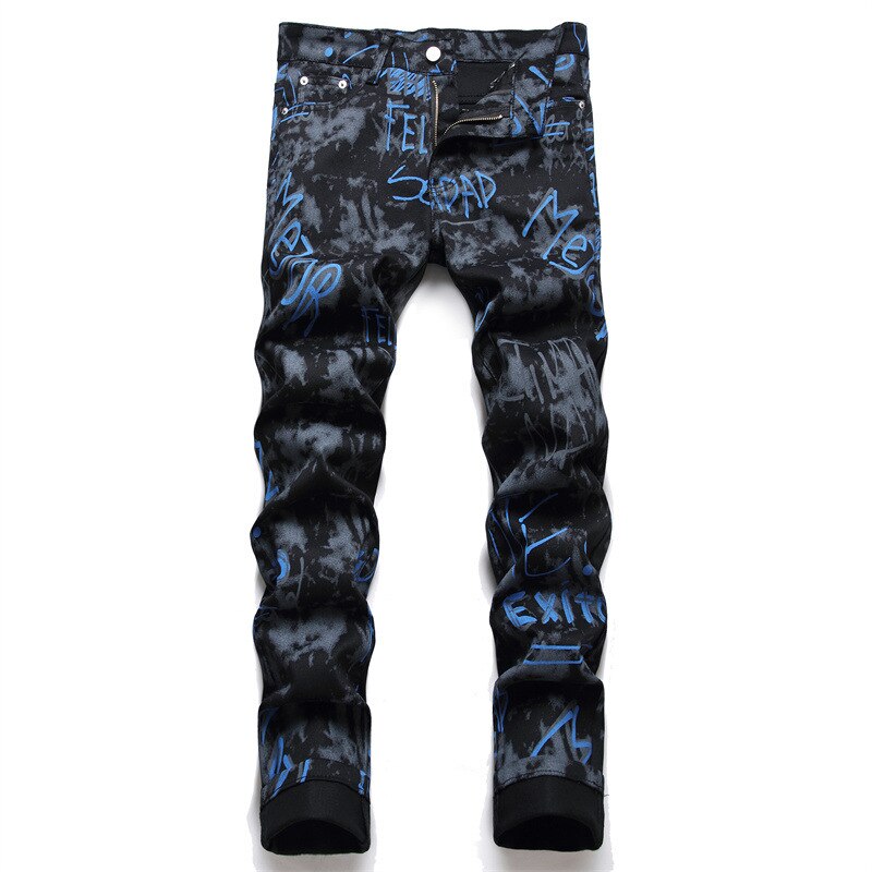 Light Luxury Men’s Street Fashion Jeans,Slim-fit Korea Version High Quality Printing Denim Pants ,Trendy Black Casual Jeans;