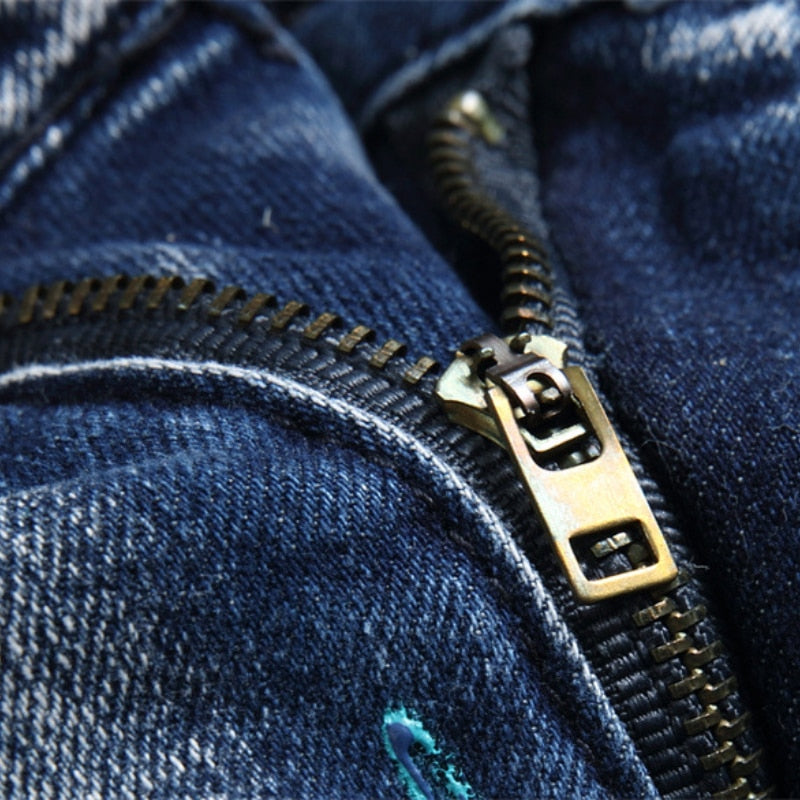 Men's Four Seasons Casual Punk Style Slim High Quality Pencil Pants Fashion Trend Retro Print Stretch Long Ripped Men's Jeans