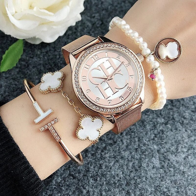 Fashion Women Luxury Diamond Watches Bracelet Ladies Quartz Watch Rose Gold Womens Wristwatch Shiny Crystal 2023