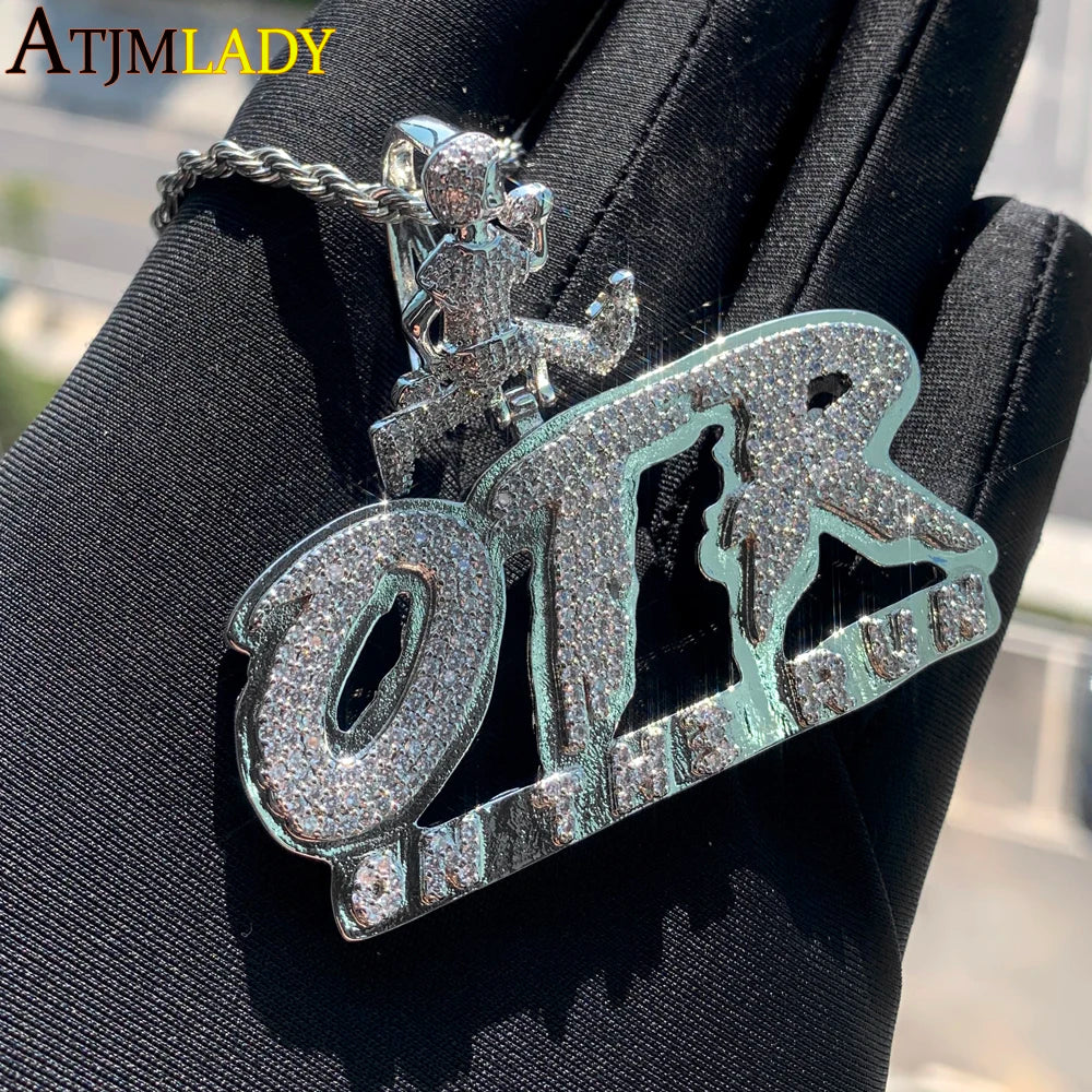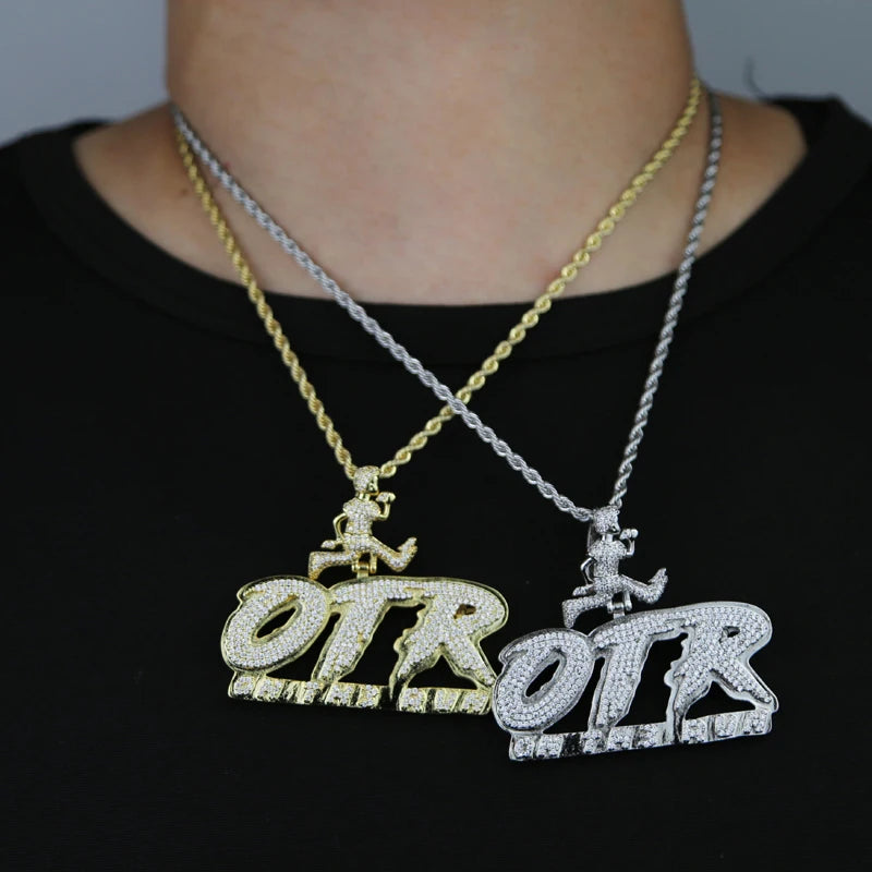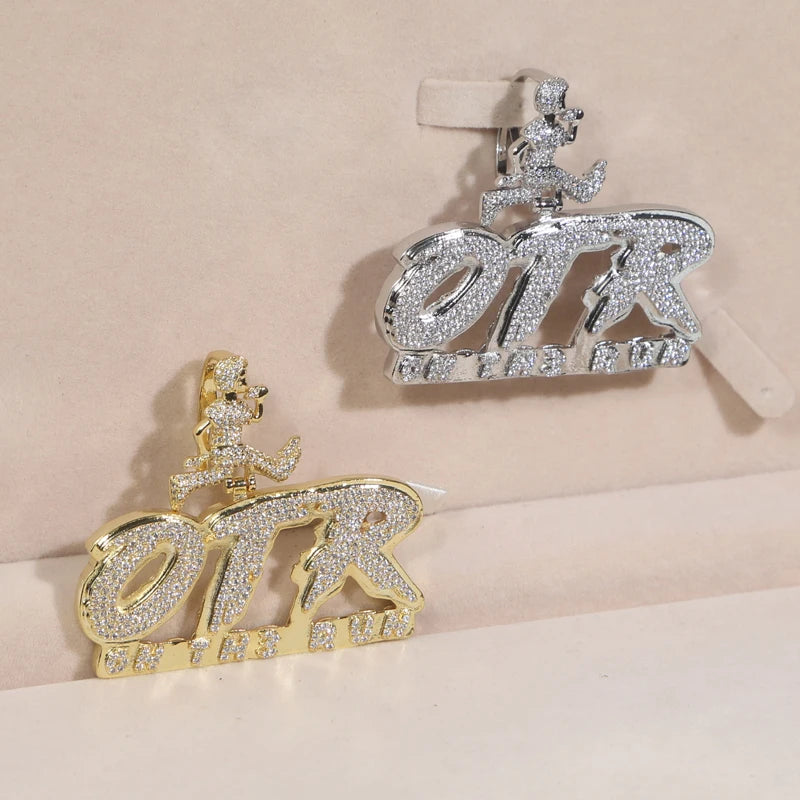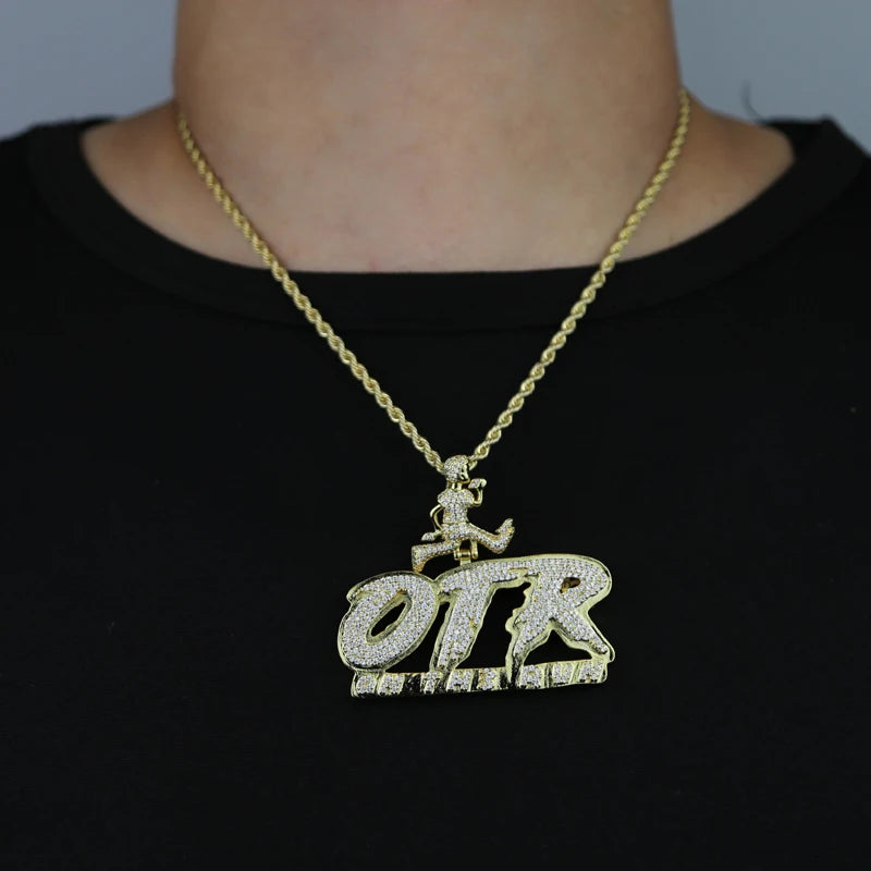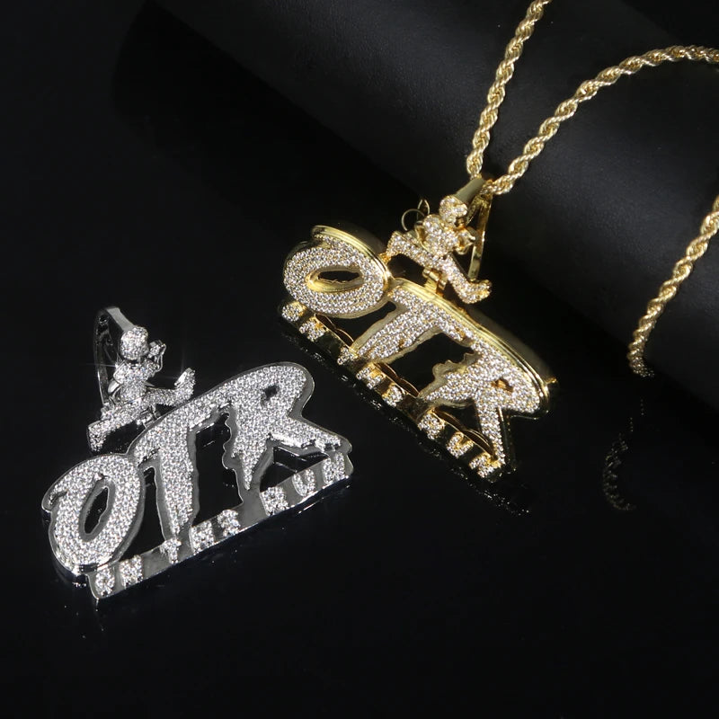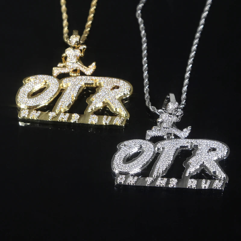 OTR Letters Pendant Necklace Iced Out Bling CZ Stones Fashion Jewelry