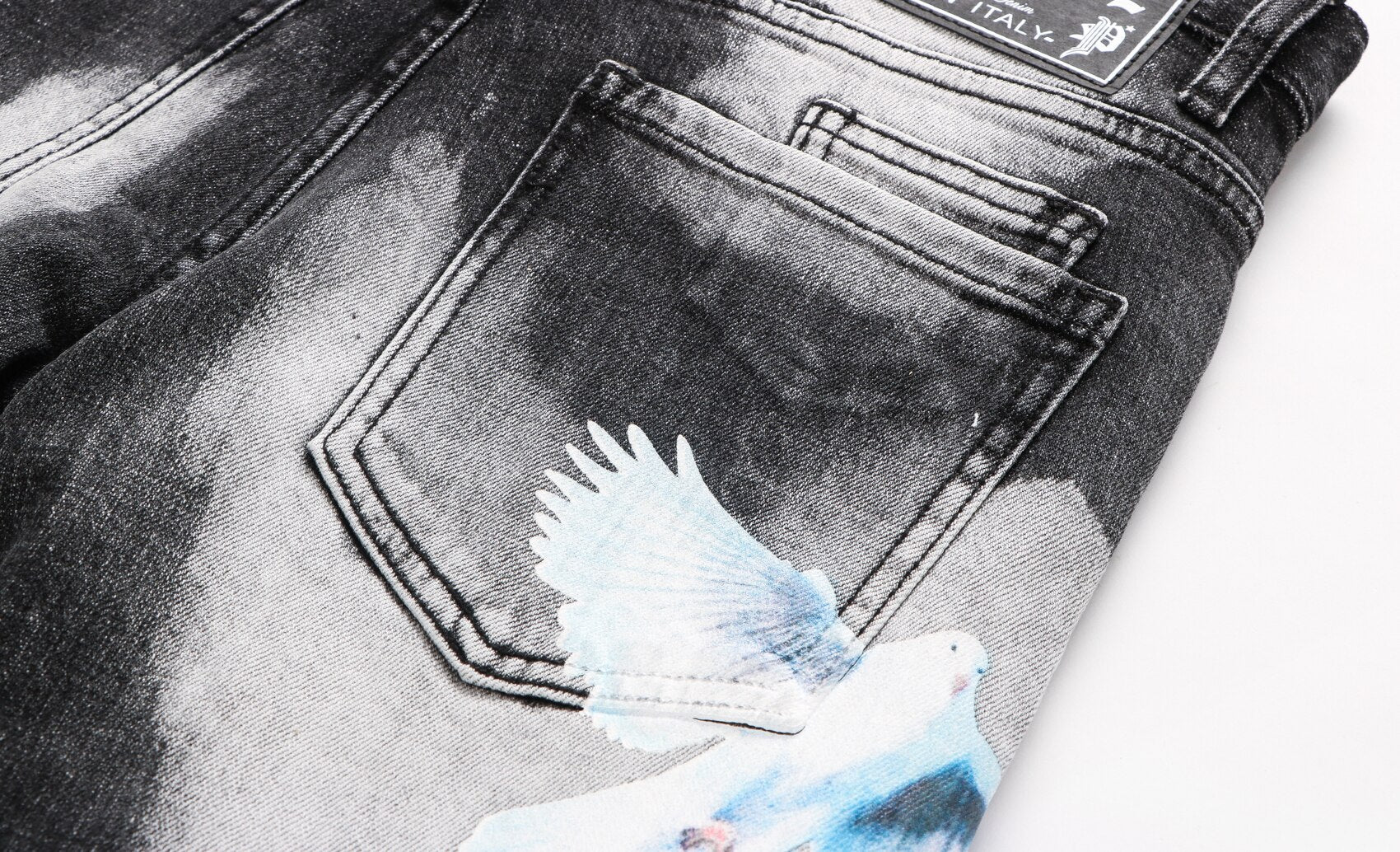 PLEINXPLEIN Original Mens Denim Pants Street Rock Vintage Hip Hop Punk Denim Pencil Pants Men's Casual Slim Fit PP Printed Jeans