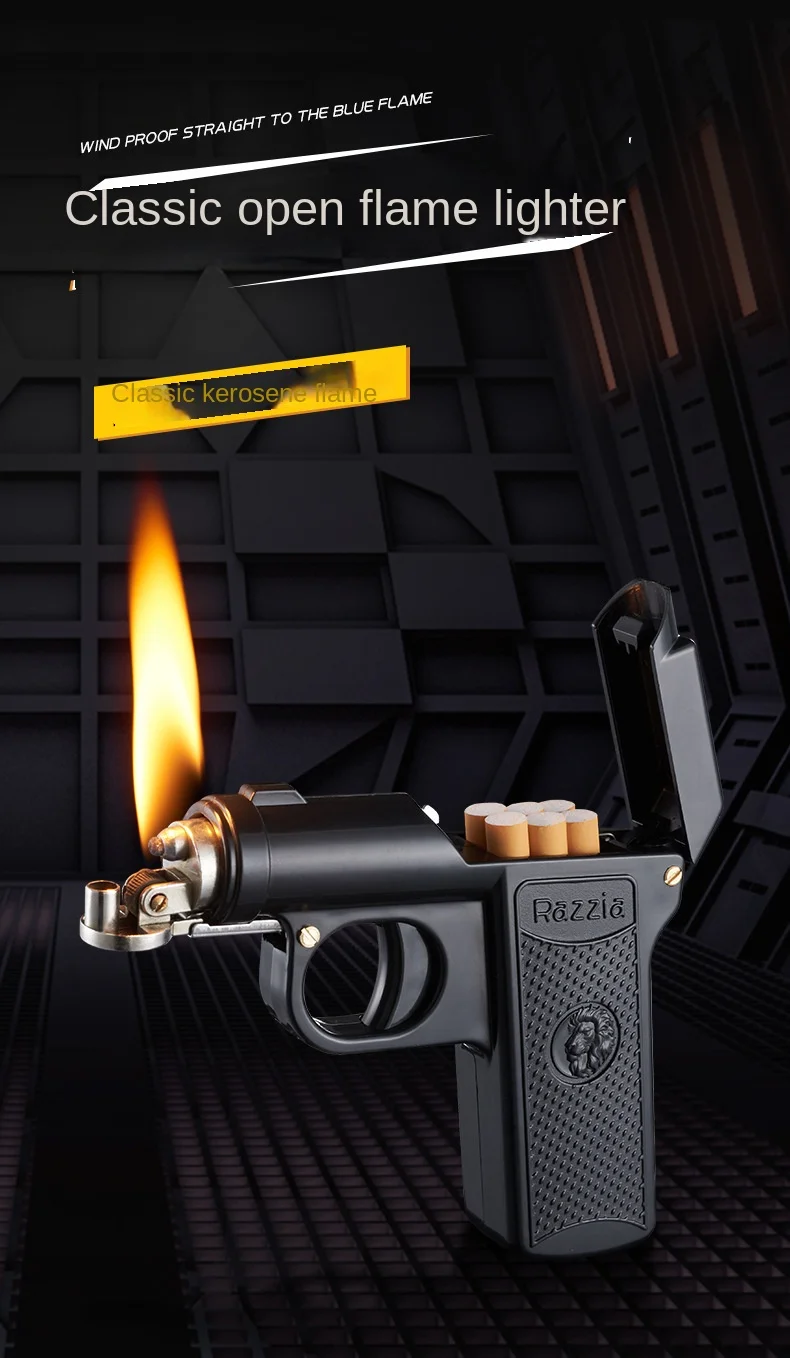 Portable Novel Oil Lighter Cigarette Case Gift Box Soldering Gun Windproof Kerosene Lighter Smoking Cigar for Men Accessories