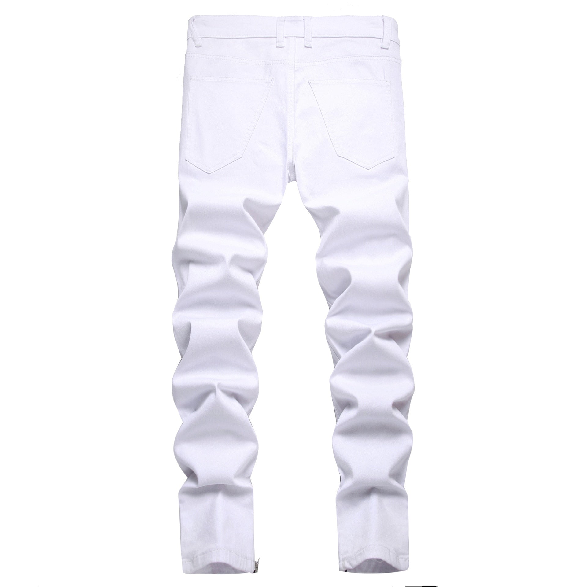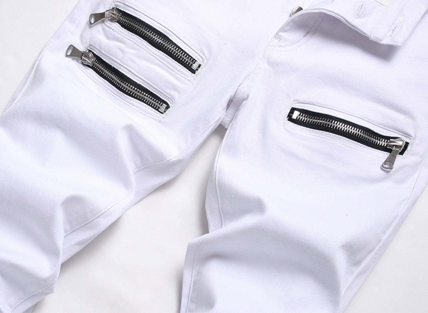 Punk Jeans Men Zipper Hip Hop Slim Fit White Bike Jeans Elastic Split Denim Pants Cotton Fashion