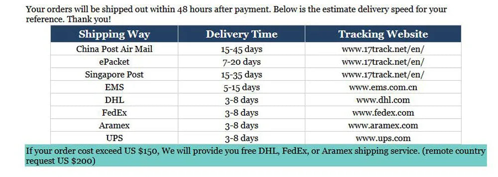 We will check every piece of products carefully before shipping, however some of them may get damaged during the transit, If you find any quality problem, please contact us within 15 days after receipt, we will resend you a new product or refund you payment. |