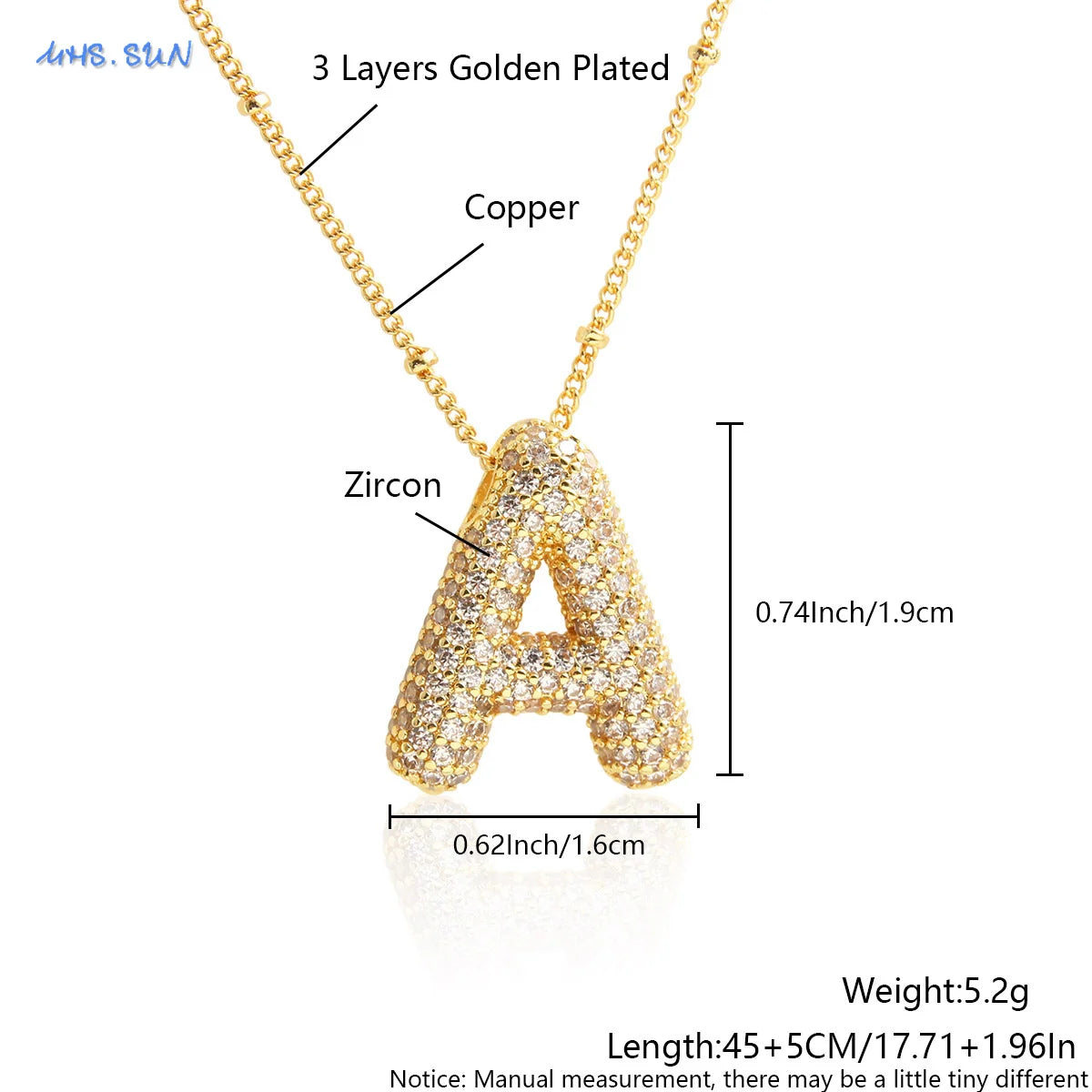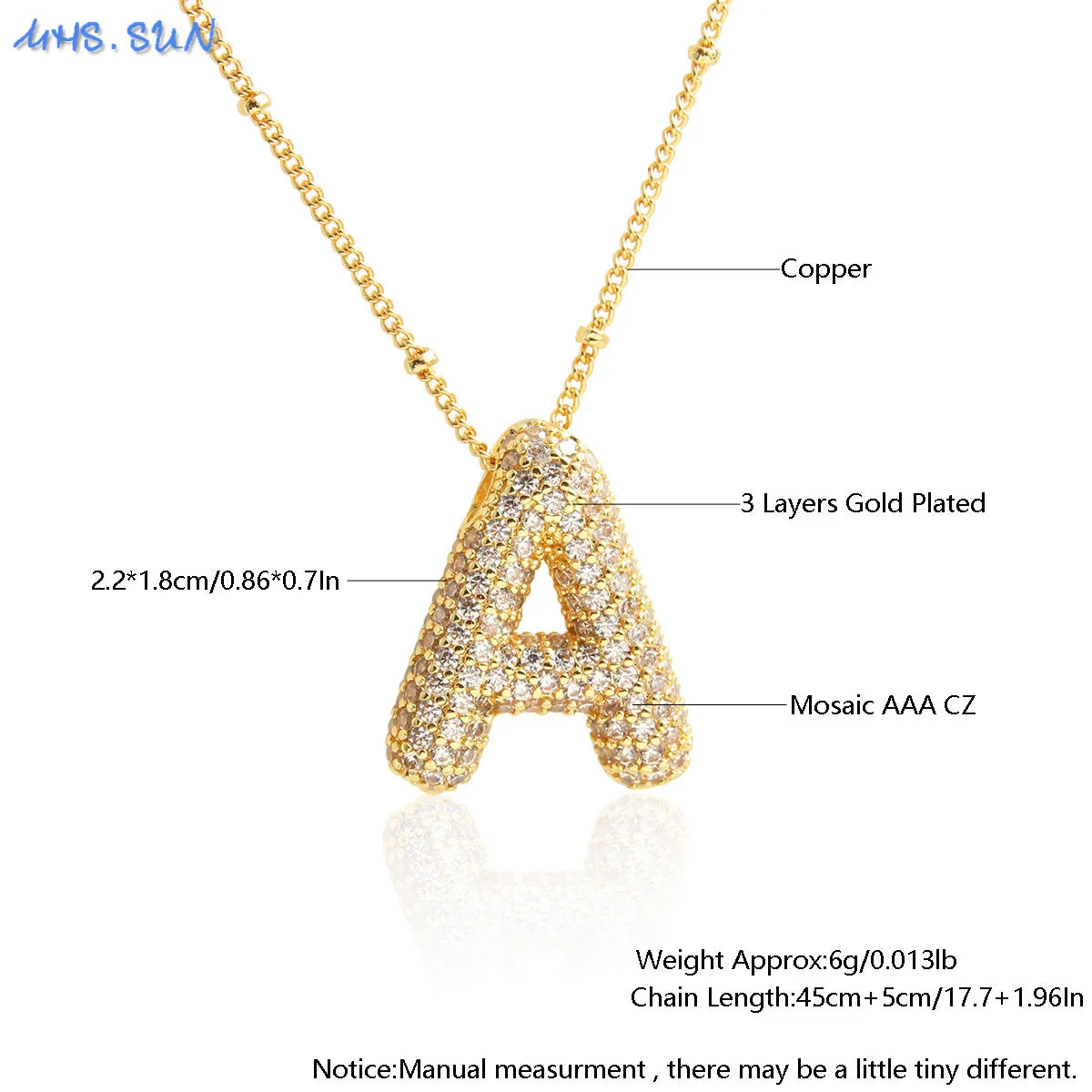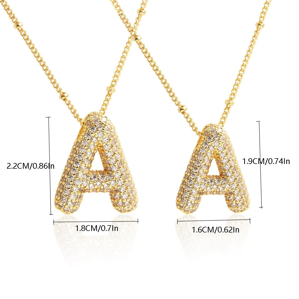 Cubic Zircon A-Z 26 Bubble Letter Necklace 2 Sizes Gold Plated M Chunky Balloon Initials Pendant