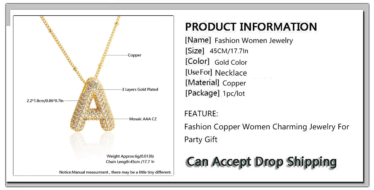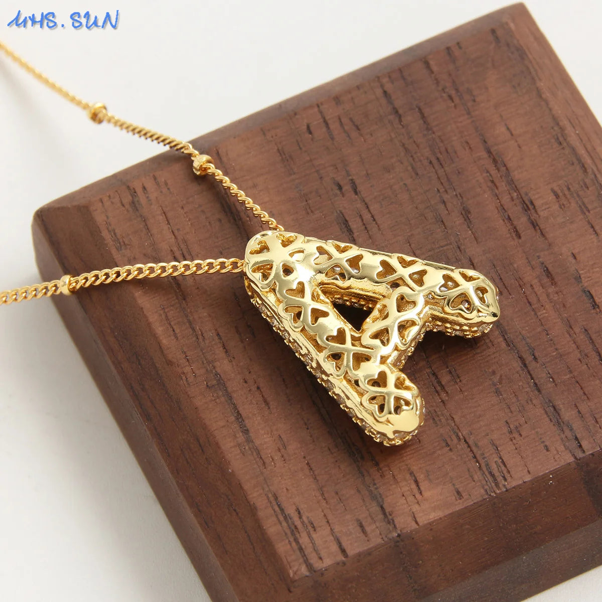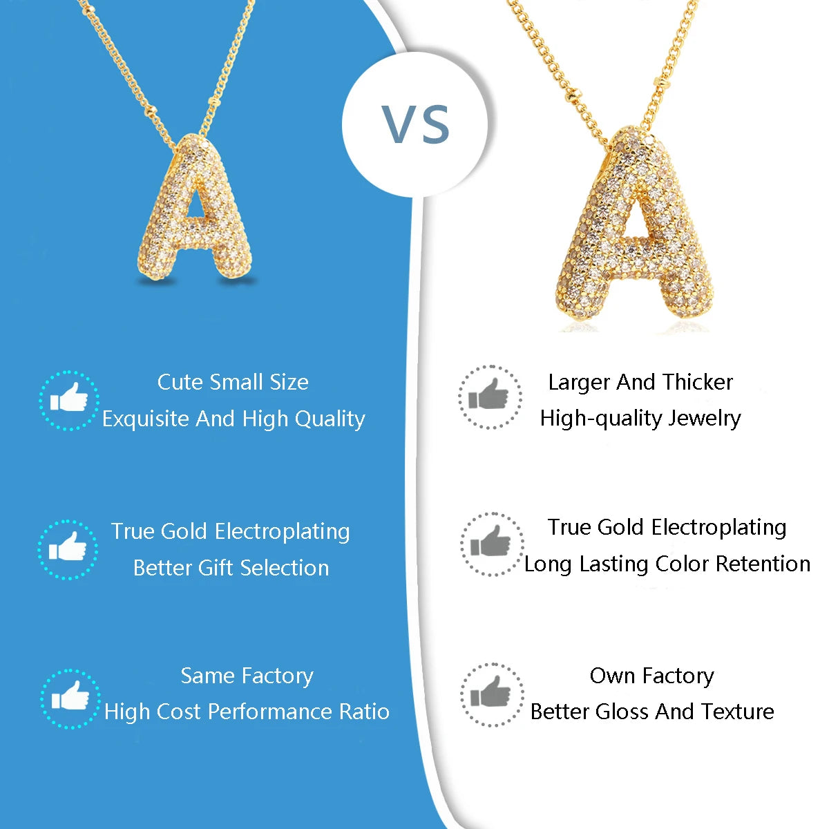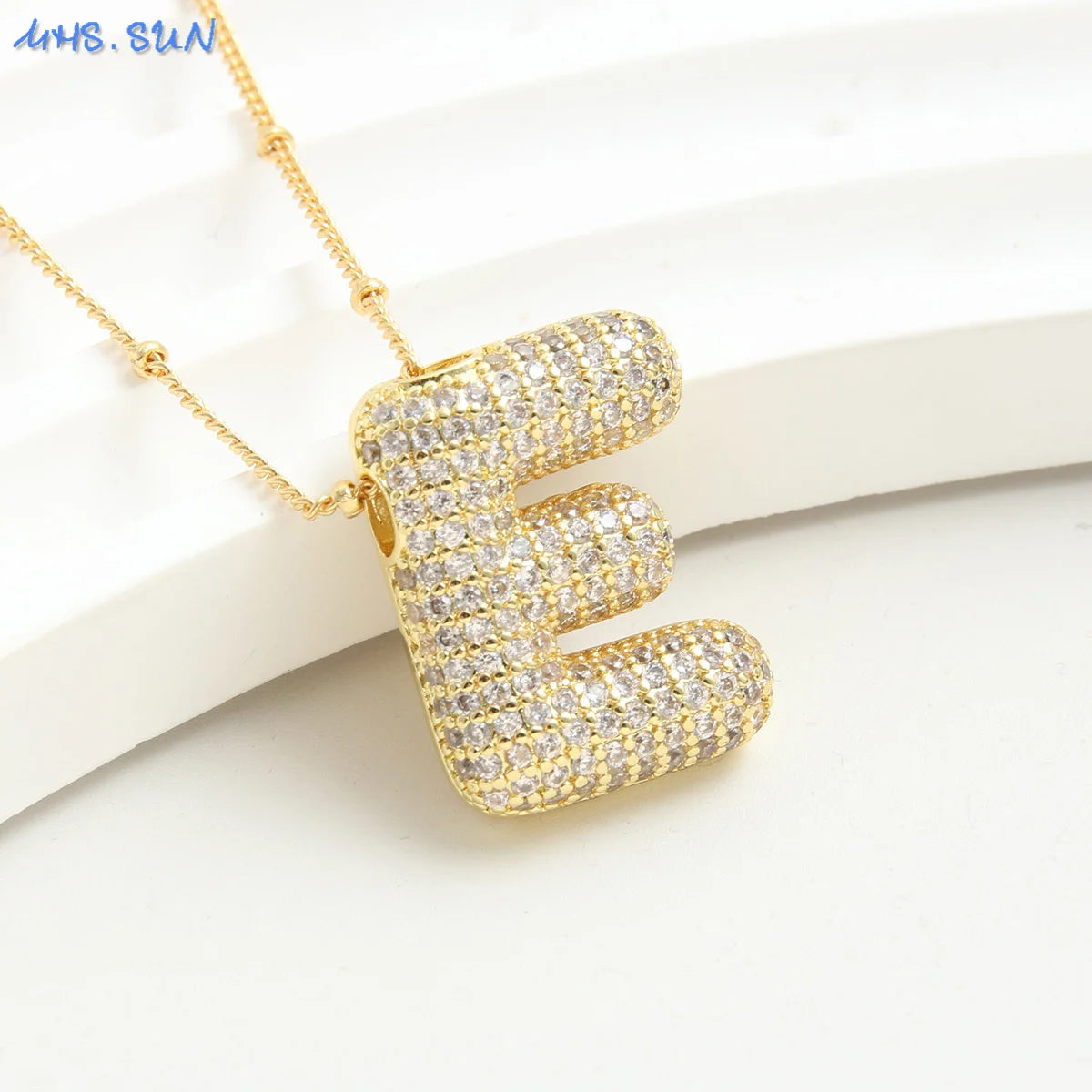 Cubic Zircon A-Z 26 Bubble Letter Necklace 2 Sizes Gold Plated M Chunky Balloon Initials Pendant