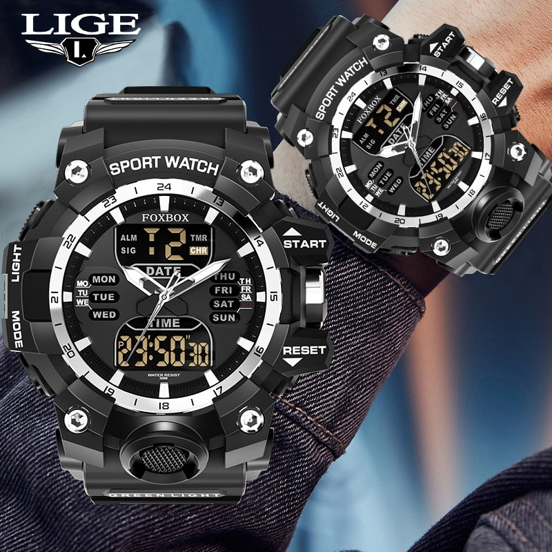 Men Military Watches 50M Waterproof Dual Display Quartz Watch Chronograph Sports Watches For Men