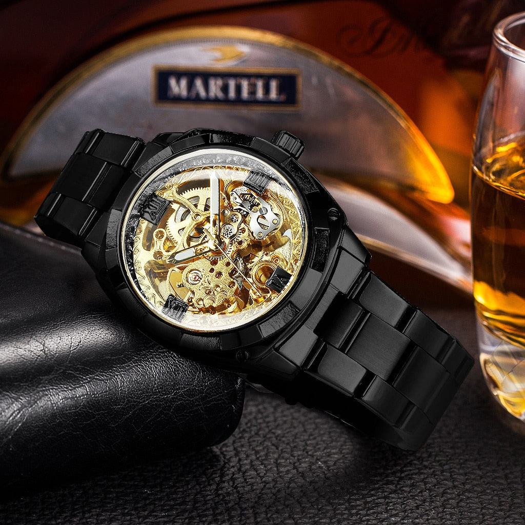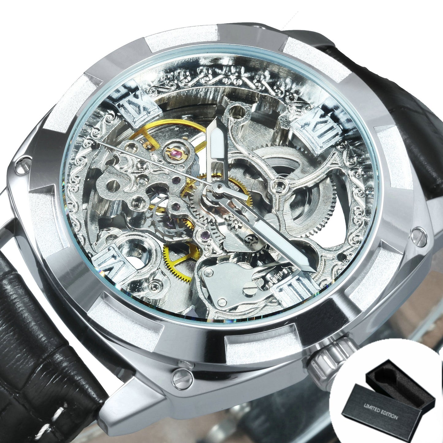 Transparent Skeleton Watch for Men Mechanical Automatic Mens Watches Top Brand Luxury Design Fashion Engraving