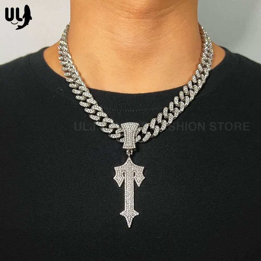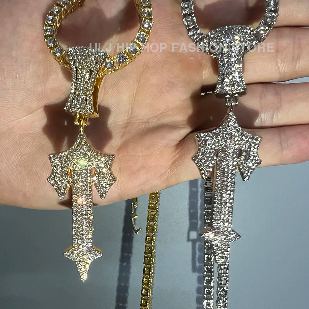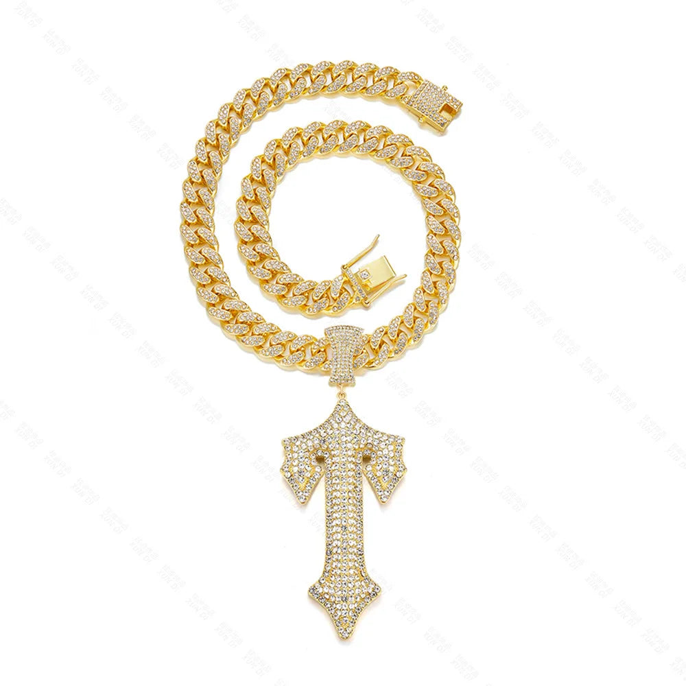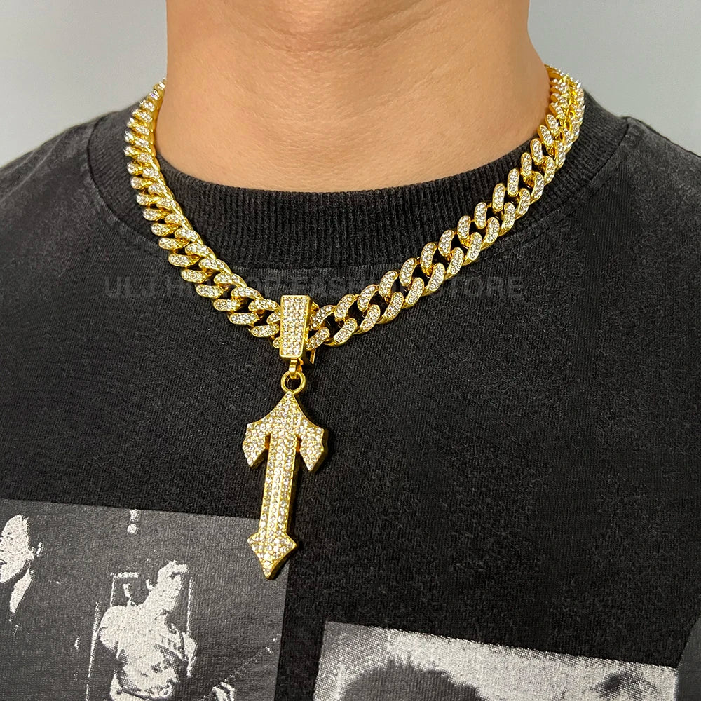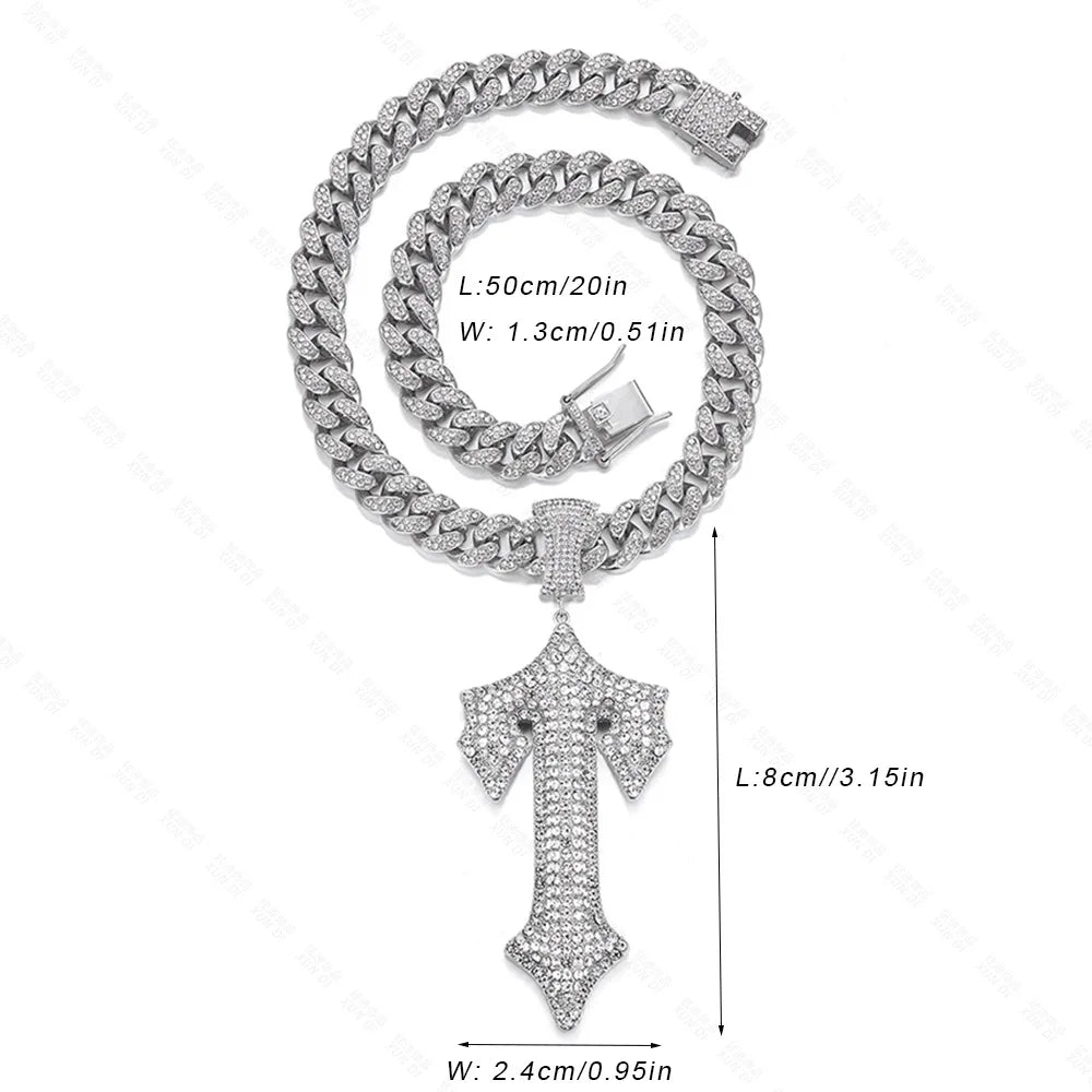 Iced Out Cross Sword Necklaces with 12mm Cuban Chain Pendant
