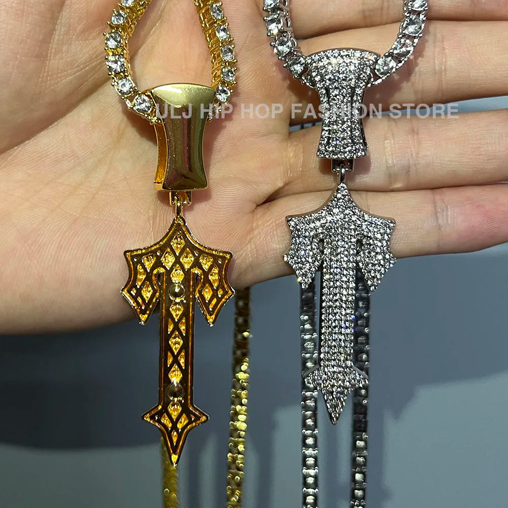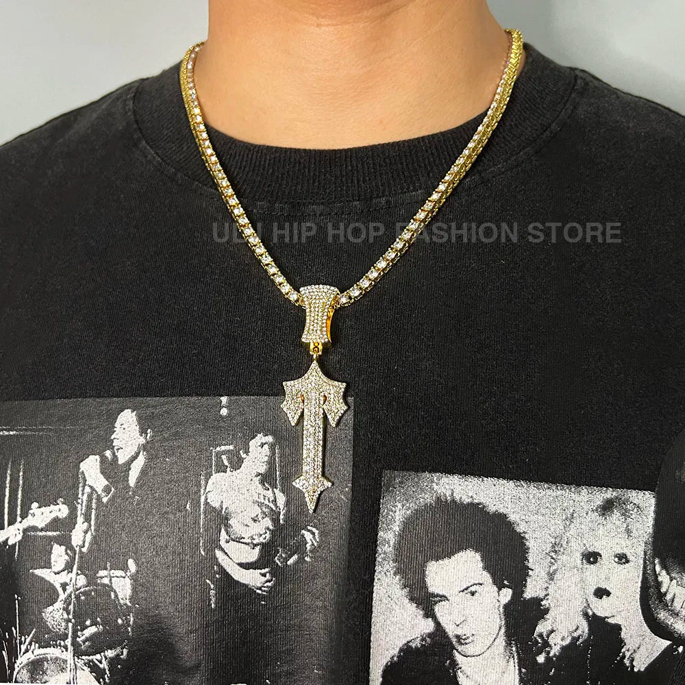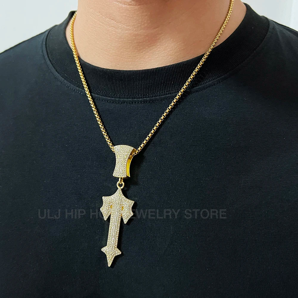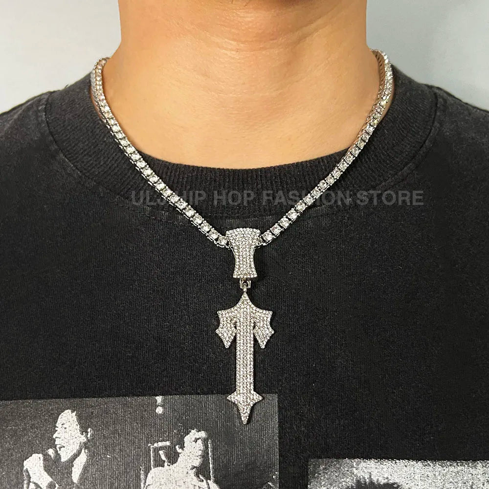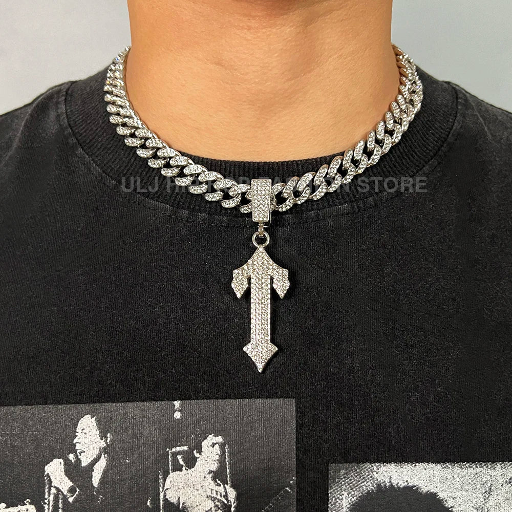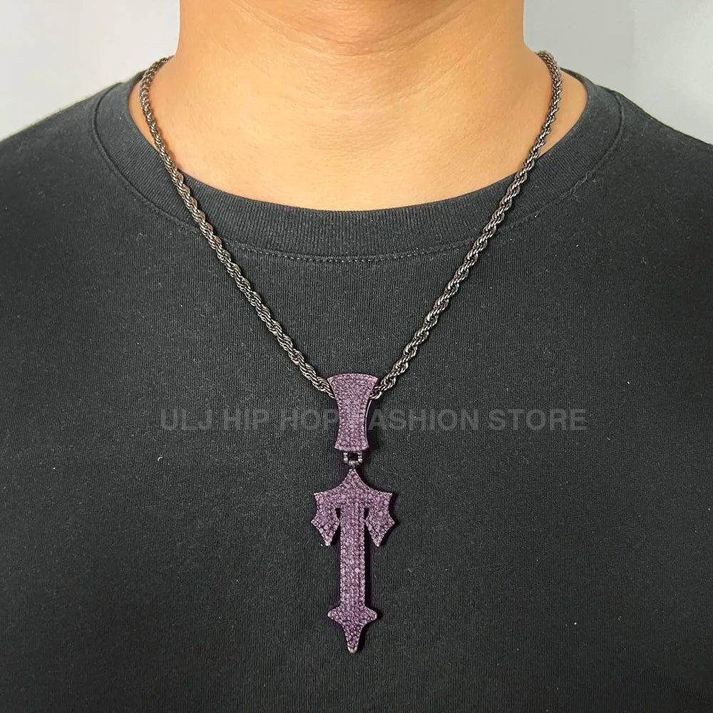 Iced Out Cross Sword Necklaces with 12mm Cuban Chain Pendant
