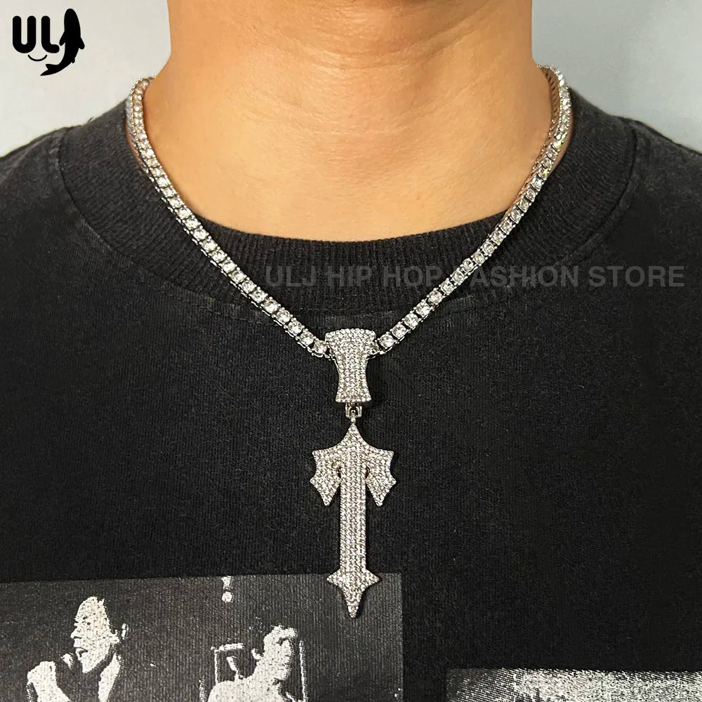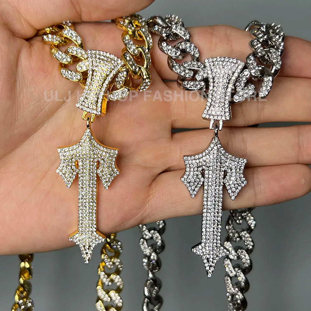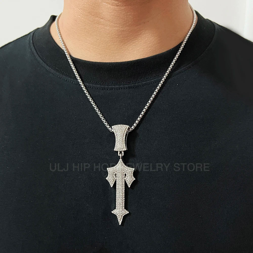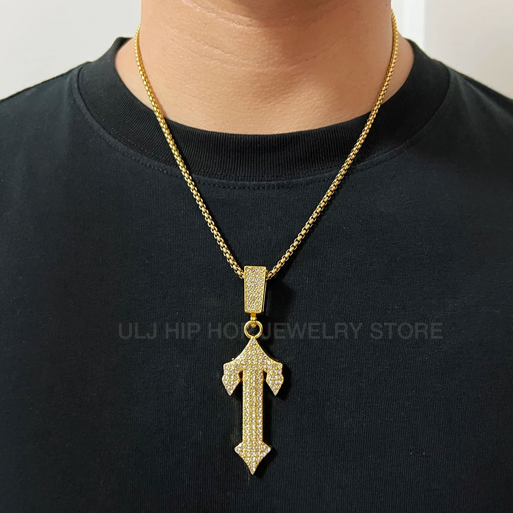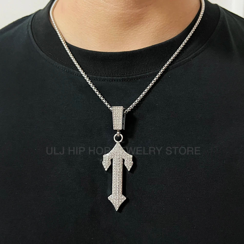 Iced Out Cross Sword Necklaces with 12mm Cuban Chain Pendant